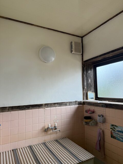 今回お風呂の壁の漆喰がはがれてしまい、照明と換気扇も経年劣化が目立つ様になったため補修をご依頼頂きました。