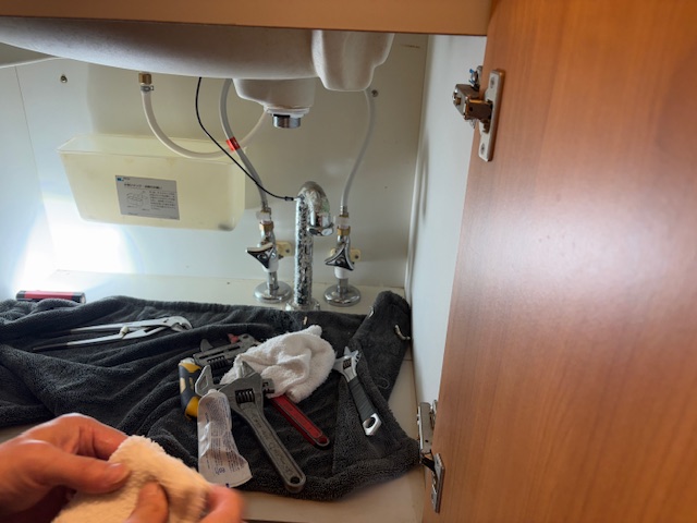 新しい排水管を設置しました。洗面台との接続をしっかり確認し、水漏れチェックをして完了です。弊社は小さな修理も承っております。お住まいのお困りごとは何でもお申し付けください!