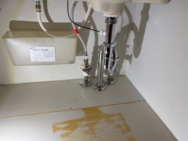 A様より「洗面台の排水管から水漏れしている」とのご相談をいただきました。使用期間は10年以上とのことです。確認したところ、金属製の排水管が大きく腐食しており、そこから漏水が発生していました。