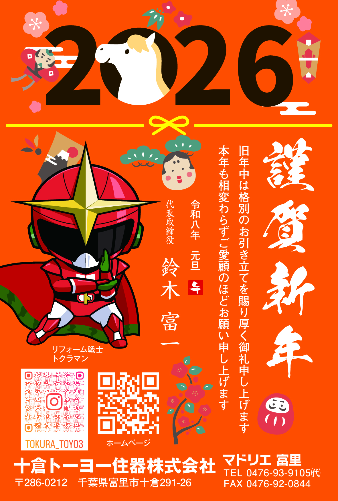 新年のごあいさつ 2026.01.01 謹んで新年のお慶び申し上げます。旧年中は、弊社に格別のお引き立てを賜り、誠にありがとうございました。本年もより一層努力し精進してまいりますので、昨年同様、変わらぬご愛顧のほど、何卒よろしくお願い申し上げます。なお、新年は1月5日から通常営業致します。 Post Share LINE note 冬季休暇のお知らせ 前の記事